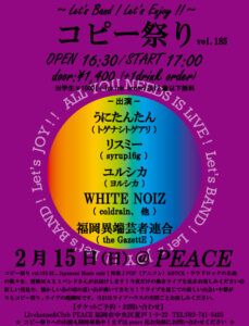 ※6月以降のpeaceコピー祭りへの出演バンドさん随時募集中!お気軽にお問い合わせお願いいたします☆